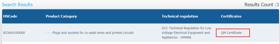 •GCC/GMARK/GCTS证书:这里GCC/GMARK/GCTSCertificate OR QM Certificate是同时出来的,所以您查询的HS CODE 对应的产品QM证书是自愿的,可做可不做,我们选择便宜的GCC/GMARK/GCTS操作即可,后面会讲解QM强制范围的要求